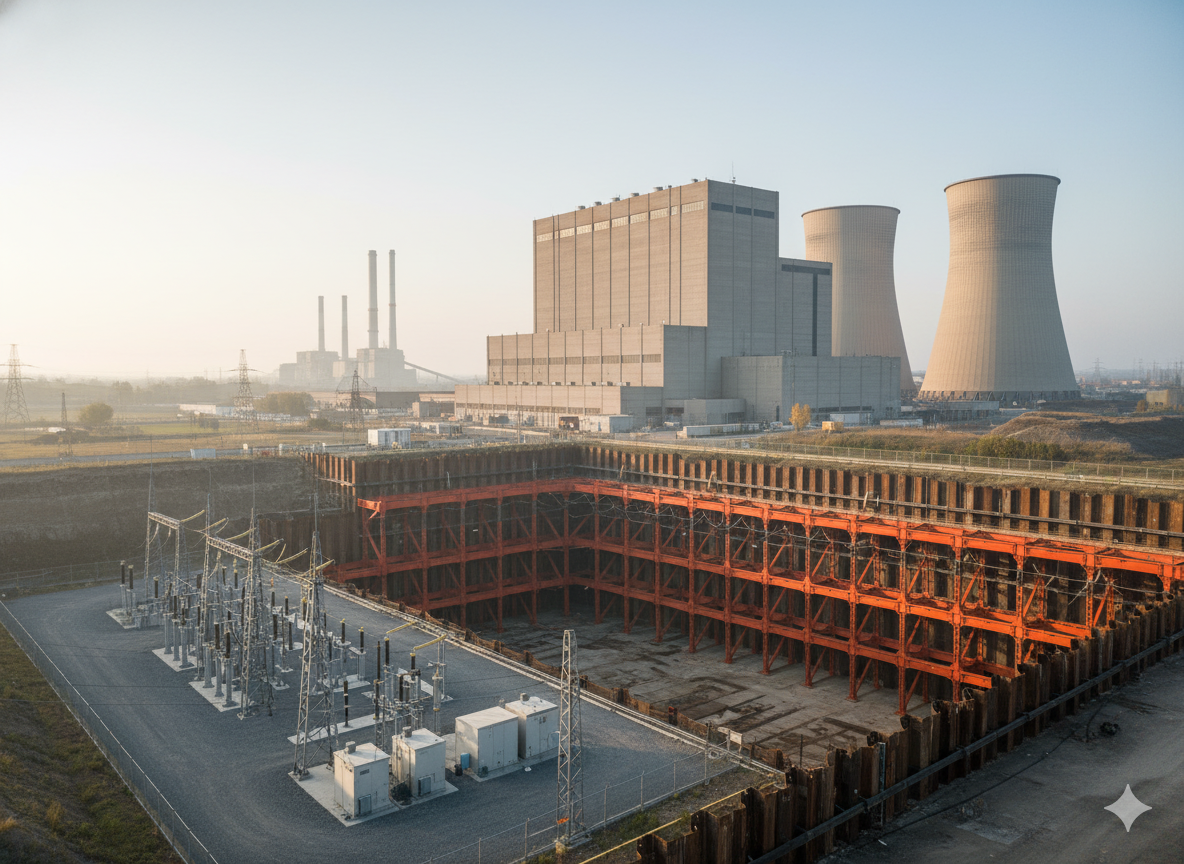 Устроили шпунтовые колодцы и ограждения котлованов под новые энергоблоки, с анкерованием и временными распорками. Решения адаптировали к промышленной площадке и графику модернизации станции.